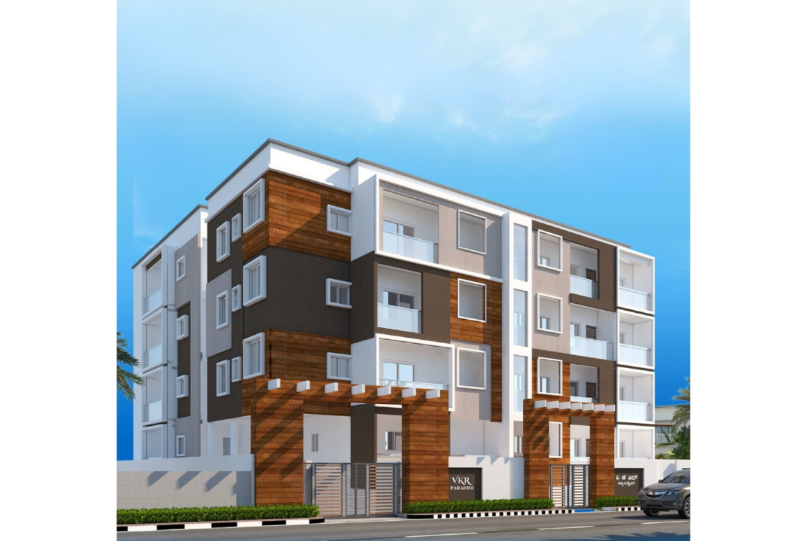 VKR Paradise is a premium residential project by VKR Infra situated in South Bangalore, Bangalore. The project offers luxurious 2BHK3BHK residences that come with smart home and premium specifications with sizes ranging from 980 sqft to 1430 sqft. The project features apartments having Maximum Living area and comes with extensive views of hills, open green spaces. This provides a perfect escape from the hustle and bustle of the city.